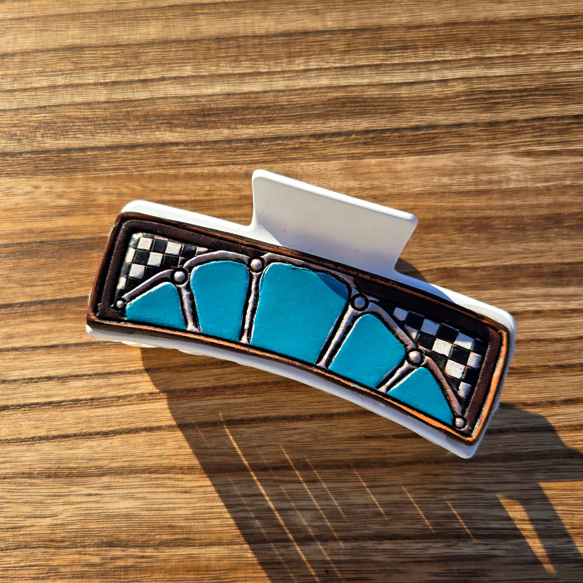 Pick your own one of a kind claw clip. Hand tooled, genuine leather, made in our shop with original patterns. No mass produced, embossed pieces here! What is pictured is what your receiving.