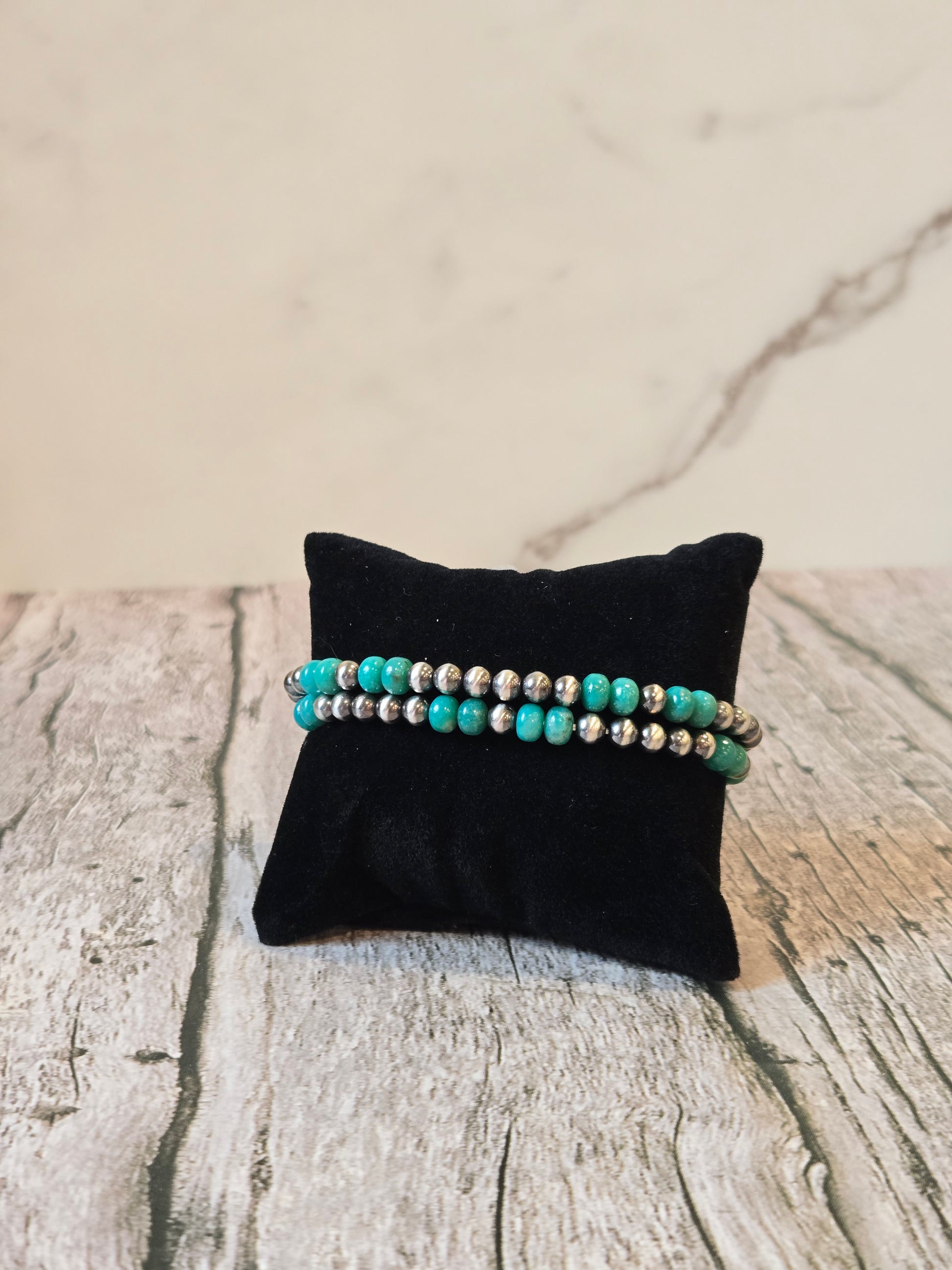 Sterling silver oxybeads with genuine campitos turquoise beads.