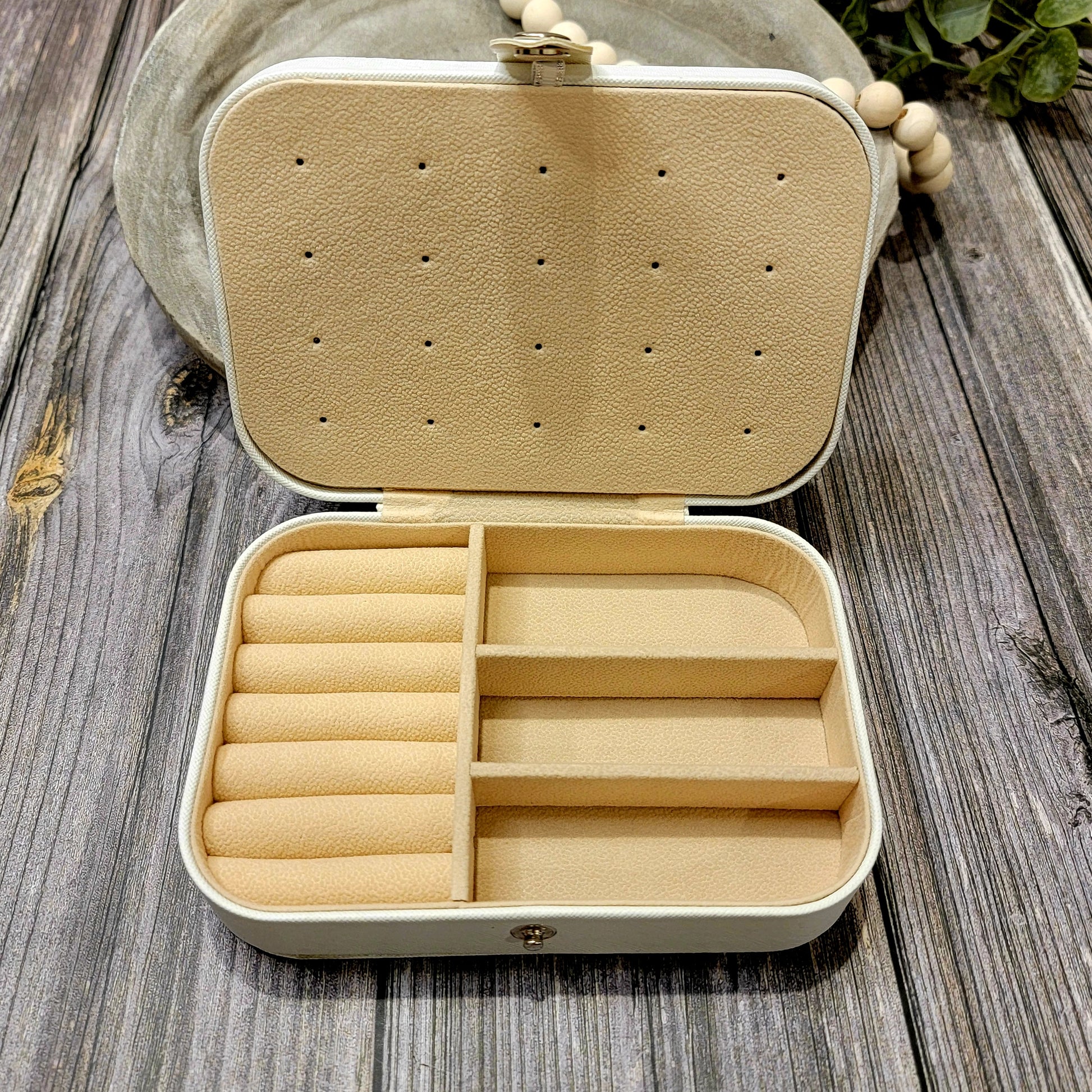 Custom made to order tooled leather top for travel sized jewelry box. All of our tooling is done in house, 100% customizable. 2 different sizes available.