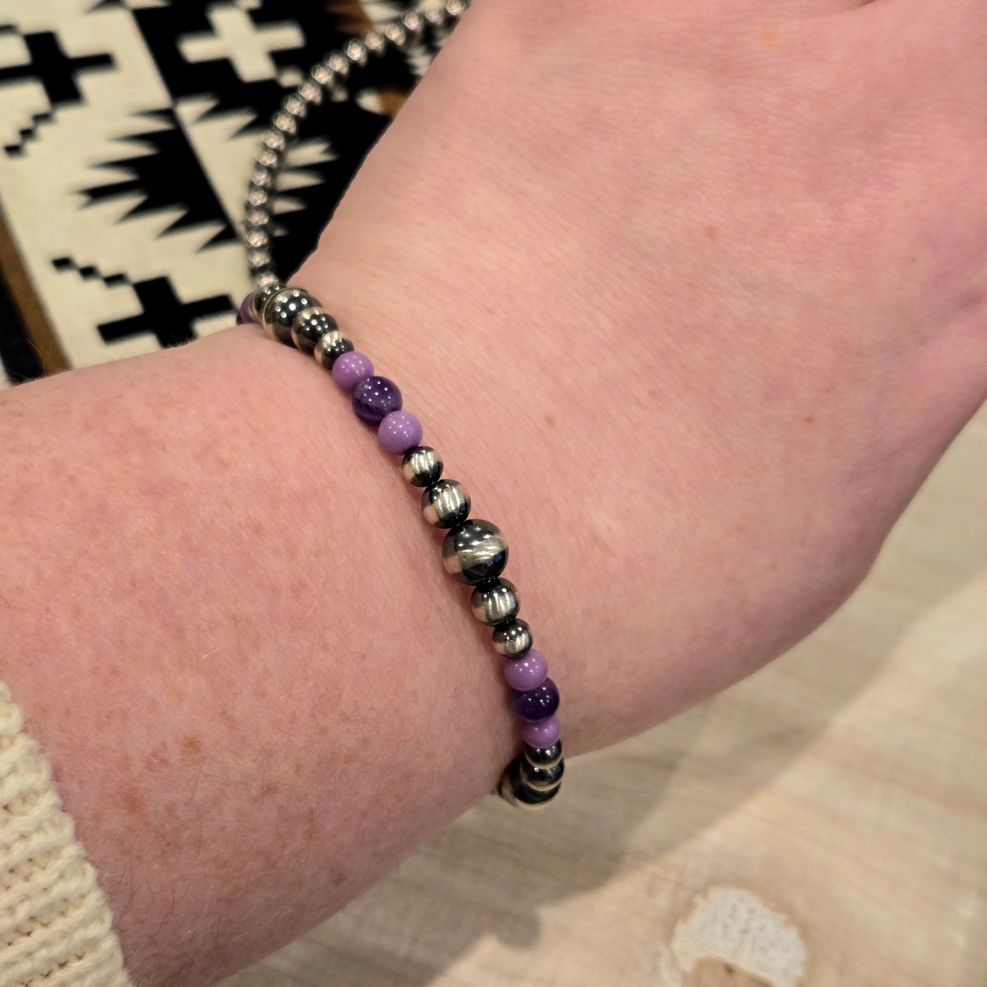Sterling silver oxybeads with genuine amethyst and phosphosiderite beads.