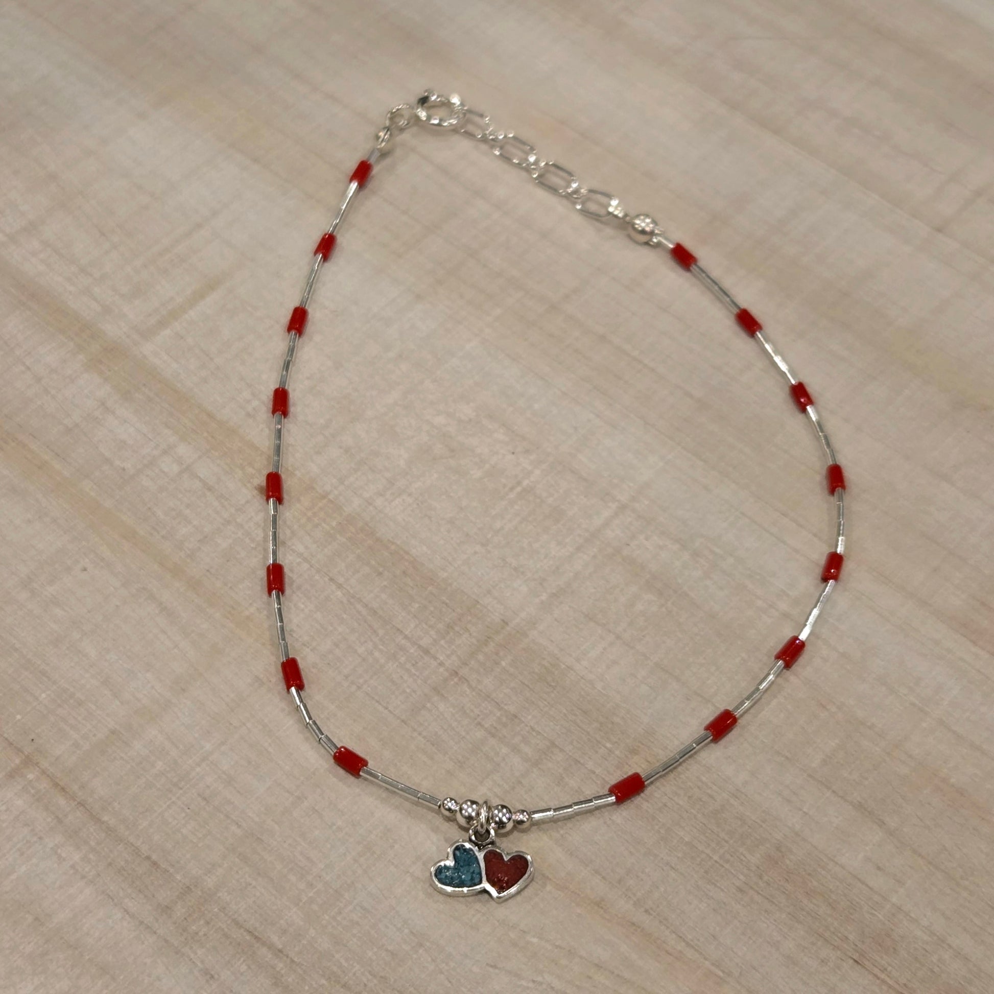 Sterling silver and stone heishi beads with sterling silver heart charm.