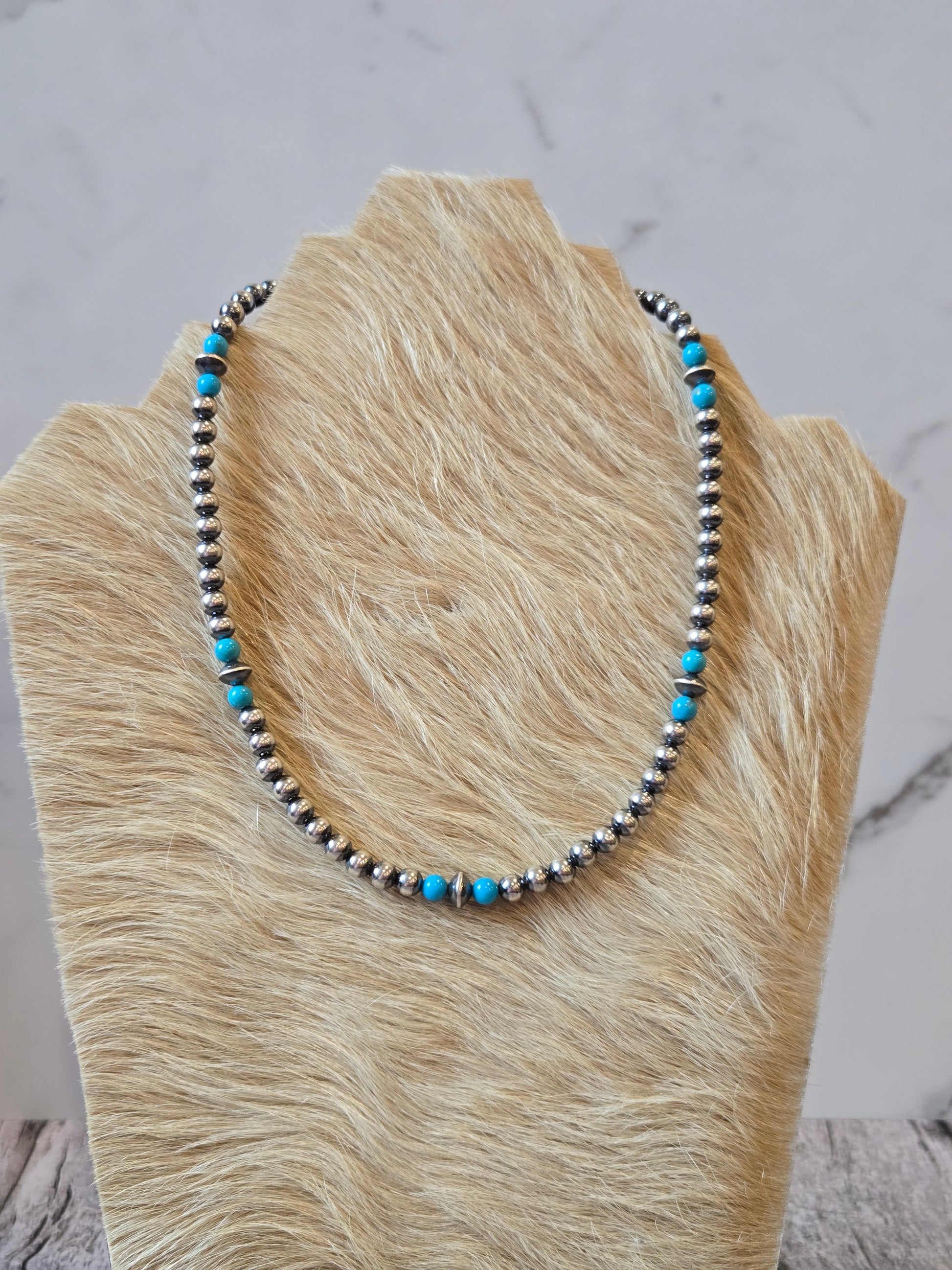 Sterling silver oxybeads with genuine mina maria turquoise beads.