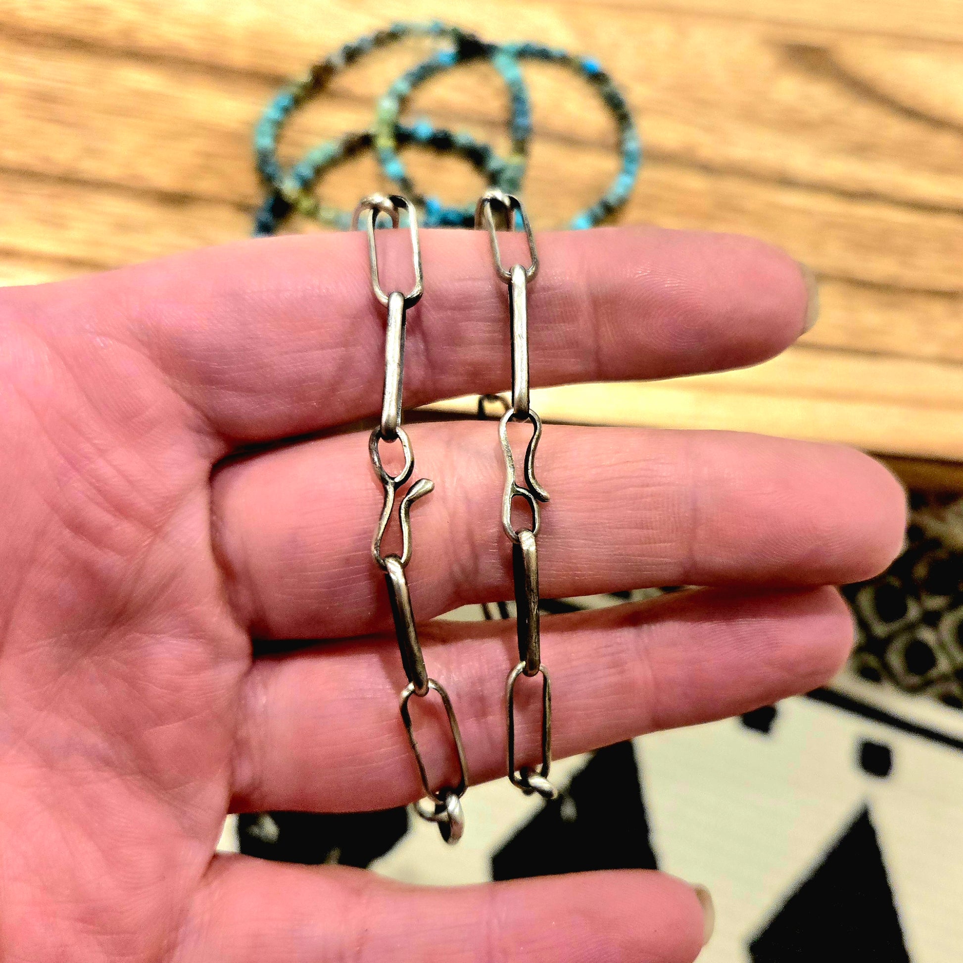 Handmade from sterling silver chain. Handmade comfort clasps make putting on a breeze, no more fighting with lobster claws! Will fit a 6.5 inch wrist, please see photo for size.