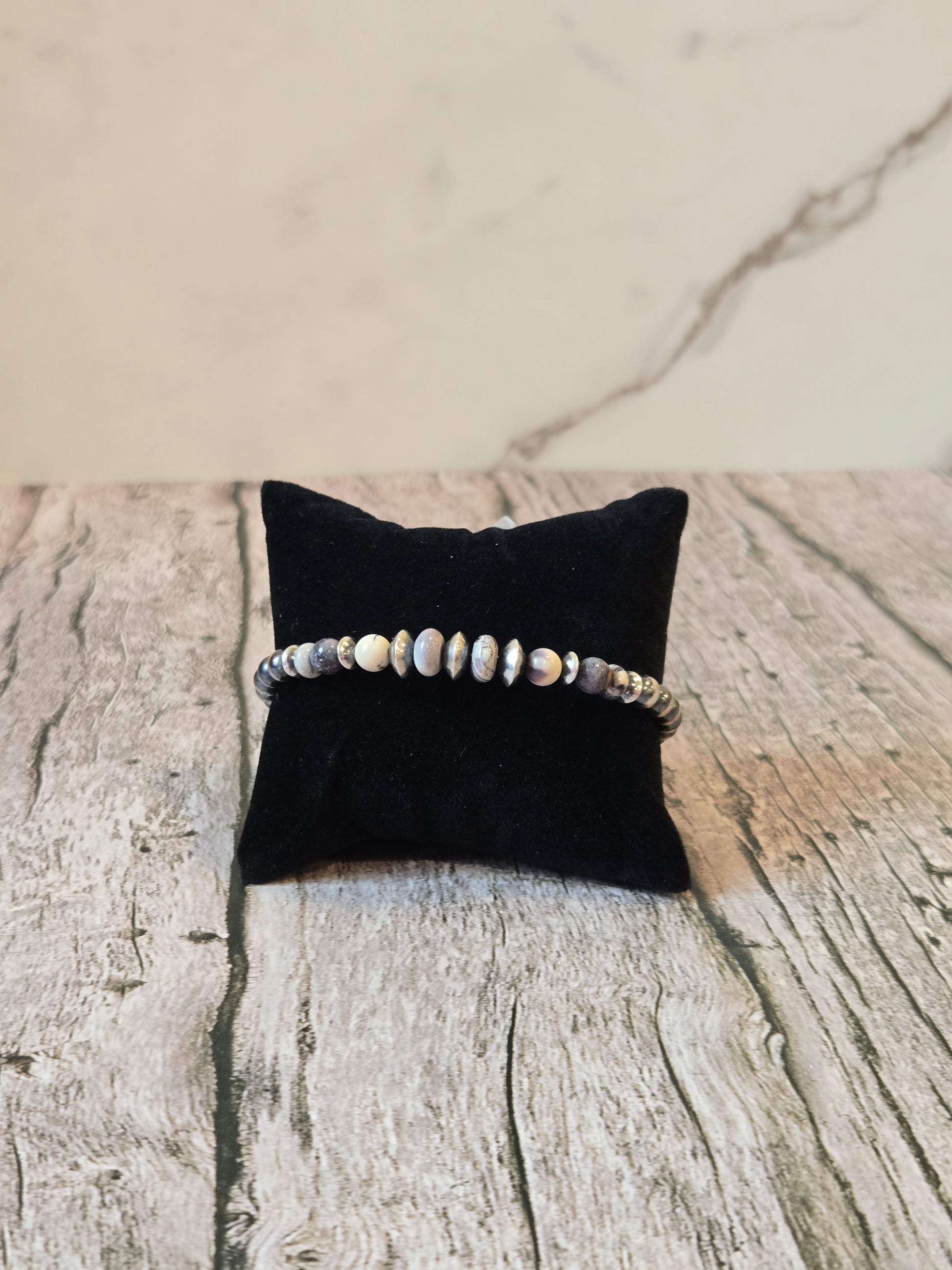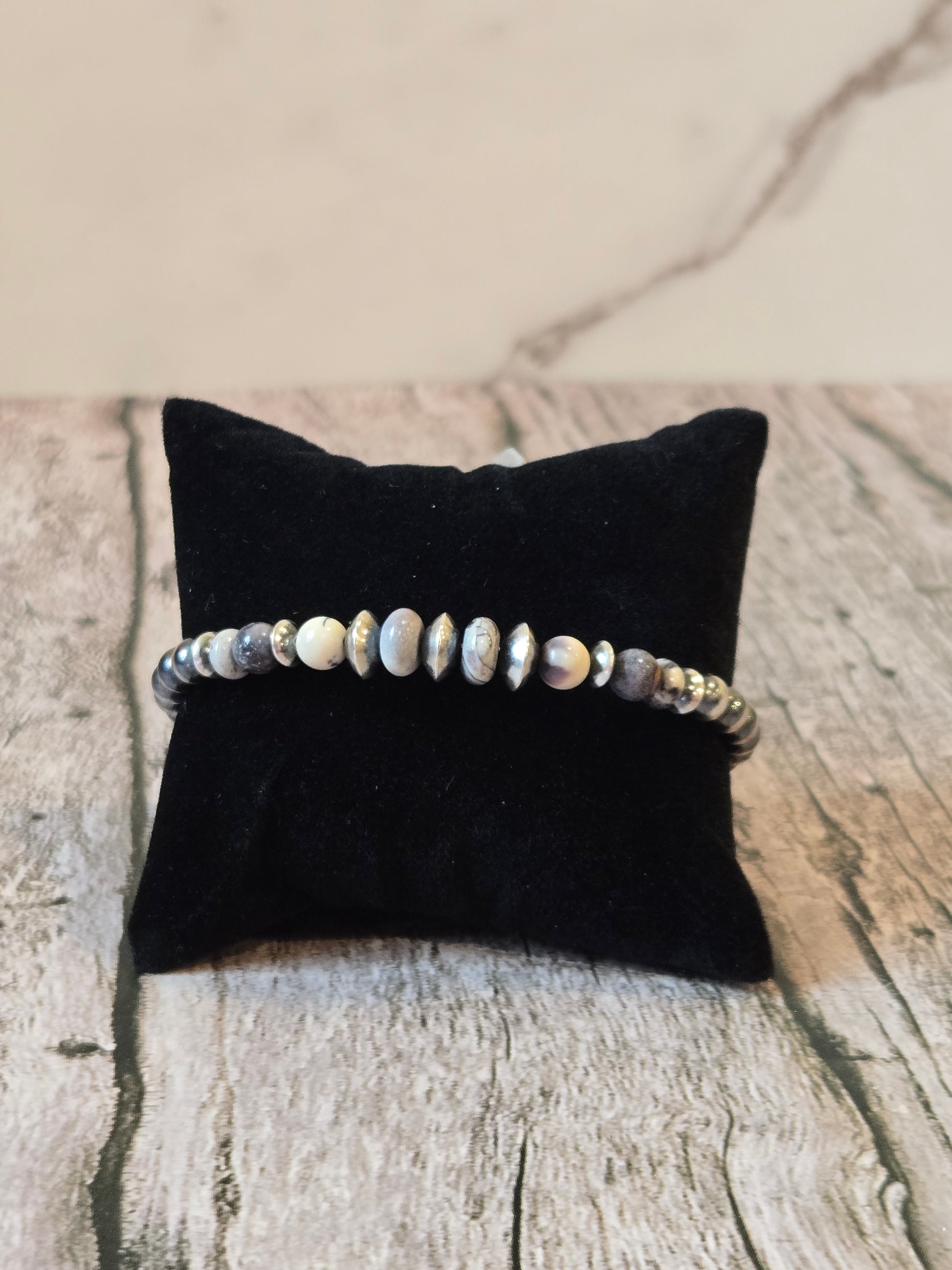 Porcelain Jasper & Desert Pearl Memory WIre Bracelet