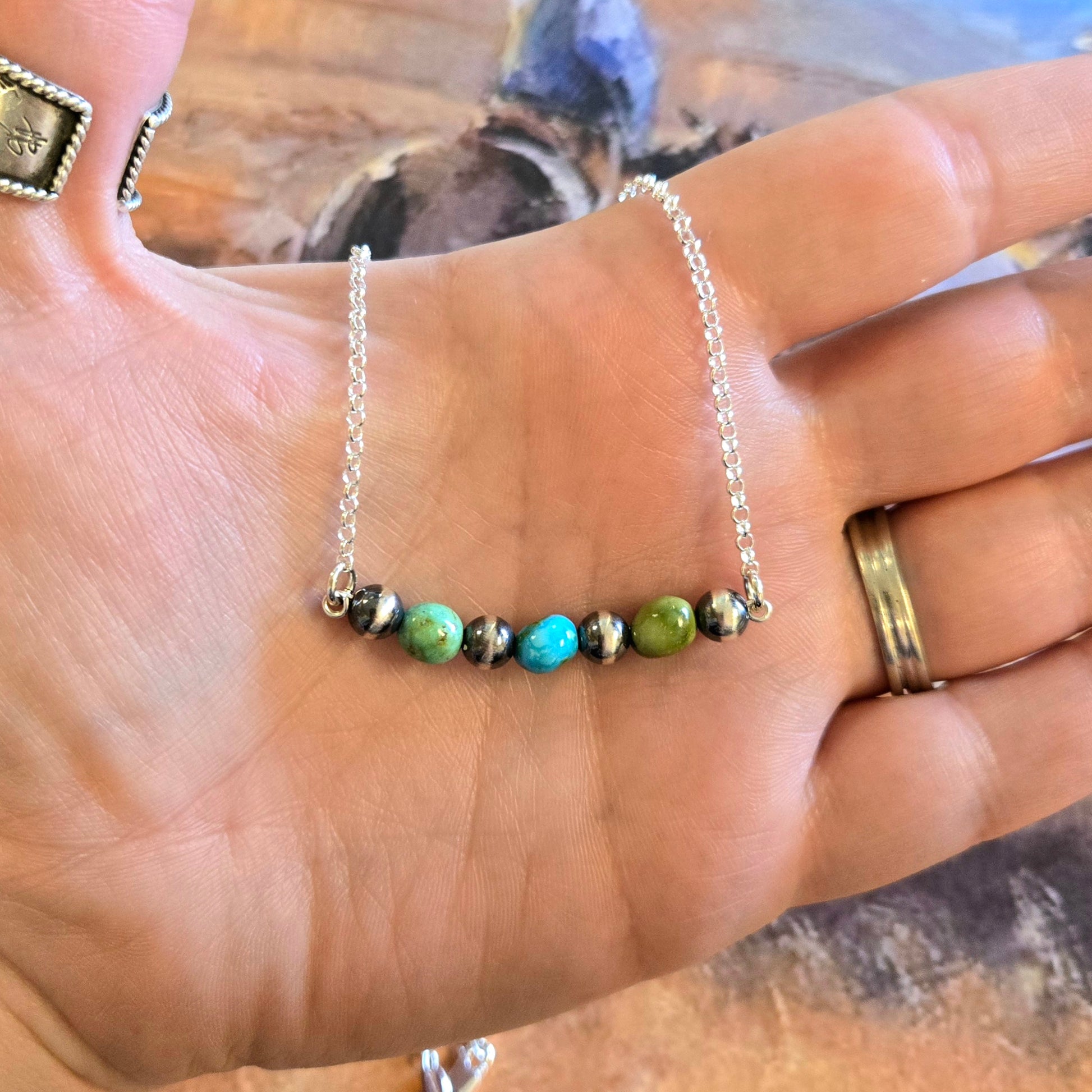 6mm sterling silver oxybead with sonoran gold nuggets on sterling silver wire and chain.